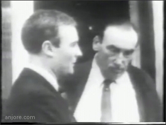 Somewhat offhand, buzzing around the flat, Lonely explains that the rozzers have kept him locked up for three days, not even allowing him to see his lawyer. Meres’ mood worsens. He stops Lonely in his tracks with a threatening gesture. He is very sceptical about who has been holding Lonely. “The cops,” insists Lonely, “the law.”